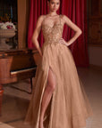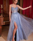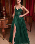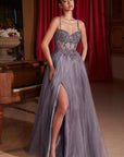Unleash your inner princess in this enchanting A-line dress, a dreamy creation destined to make you the belle of the ball. The embellished lace bodice is a masterpiece of intricate details, while the sheer waistline structure adds a touch of modern flair to this timeless silhouette. Delicate lace appliqué straps delicately grace your shoulders, enhancing the romantic charm. The layered glitter tulle skirt sparkles with every twirl, creating a magical aura that's perfect for the young and vibrant. A playful leg slit adds a hint of flirtation, allowing you to dance the night away with confidence. The lace-up corset back closure not only ensures a perfect fit but adds a touch of whimsy to this fairytale ensemble. Step into a world of fantasy and let this dress be the canvas for your youthful elegance and spirited charm.