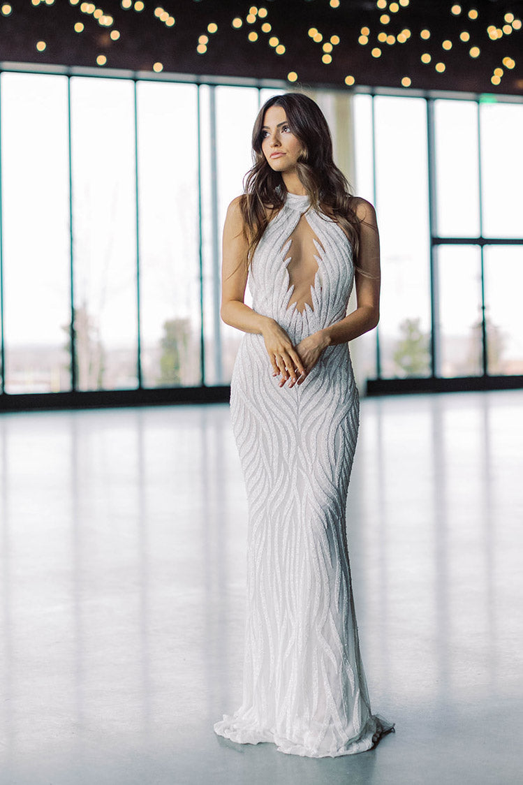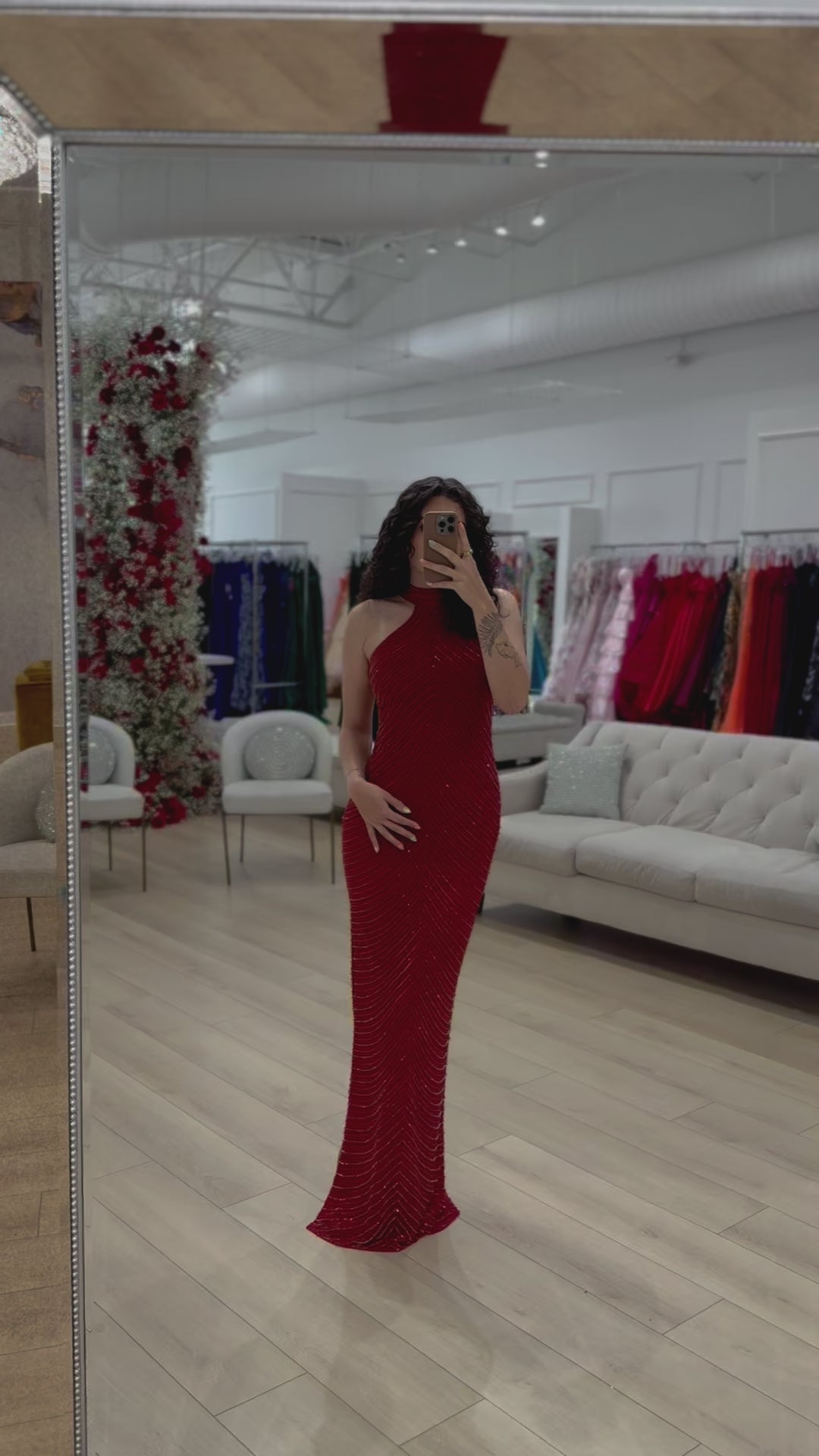 G1532 MNM Couture Asymmetrical pink evening gown with gorgeous details on the one shoulder and side train