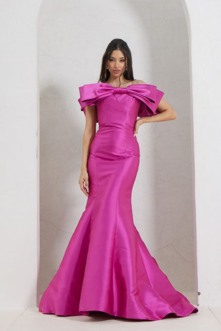 Radiate elegance and confidence in the Terani 241E2478 Off-Shoulder Trumpet Embroidered Mikado Evening Gown. This exquisite design features a flattering off-shoulder neckline and a sculpted trumpet silhouette that enhances every curve. Crafted from luxurious Mikado fabric with intricate embroidery, it blends timeless sophistication with couture artistry. Available in Taupe, Ivory Champagne and black this gown is perfect for formal events, galas, or red-carpet occasions. Select colors/sizes subject to availability. Contact a stylist for immediate shipping.