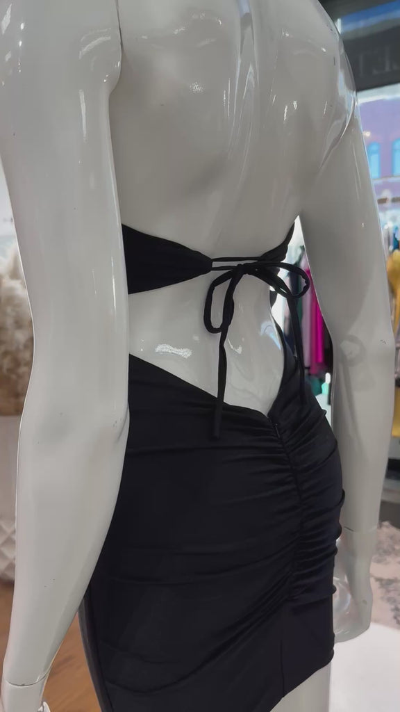 Stunning fitted dress by Atria - Made in the USA! Made with stretch-jersey fabric, this low-back gown is flattering and sexy.