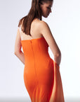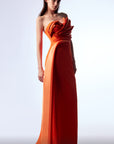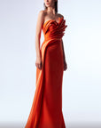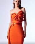 Make a bold statement in the MNM Couture G1719, a striking orange evening gown crafted from luxurious rayon crepe and silk. Featuring asymmetric pleating and a sleek column silhouette, this one-shoulder formal dress flatters the figure while delivering contemporary elegance. Perfect for upscale soirées, red carpet events, or fashion-forward galas.