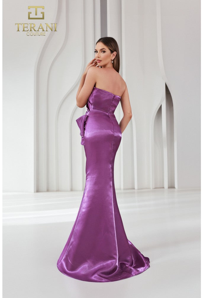 Entrancing mermaid fit and flared formal gown, strapless, with sweetheart neckline, and stunning contrasting floral embellished design throughout bodice and scattered intricately down the skirt.