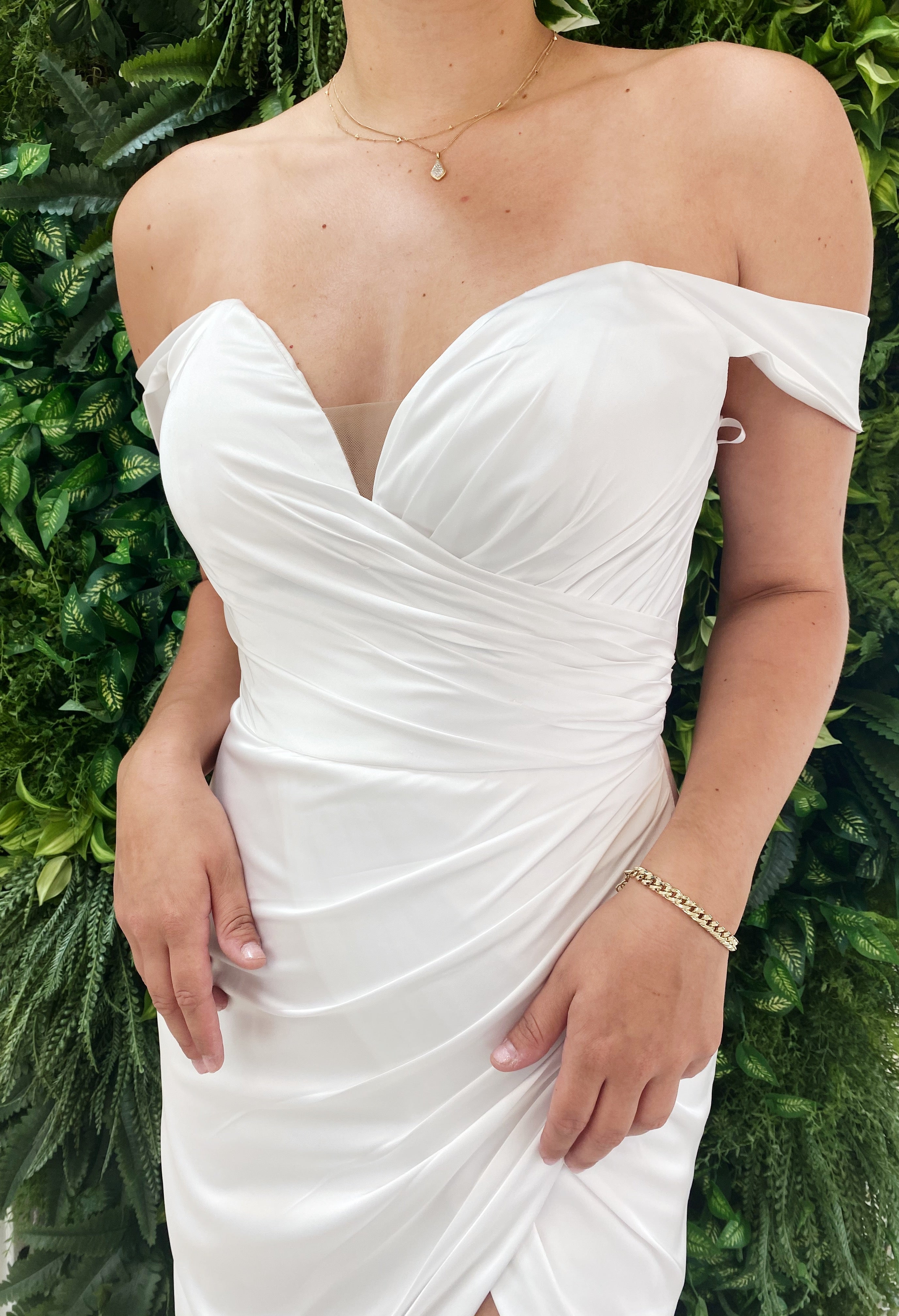 Beautiful off the shoulder, sweet-heart neck line gown