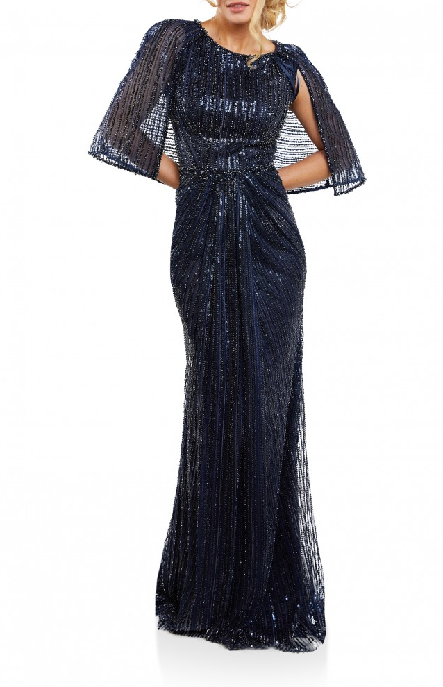 Gorgeous all over sequin fitted gown with a detailed illusion scoop neck, perfect for your special occasion