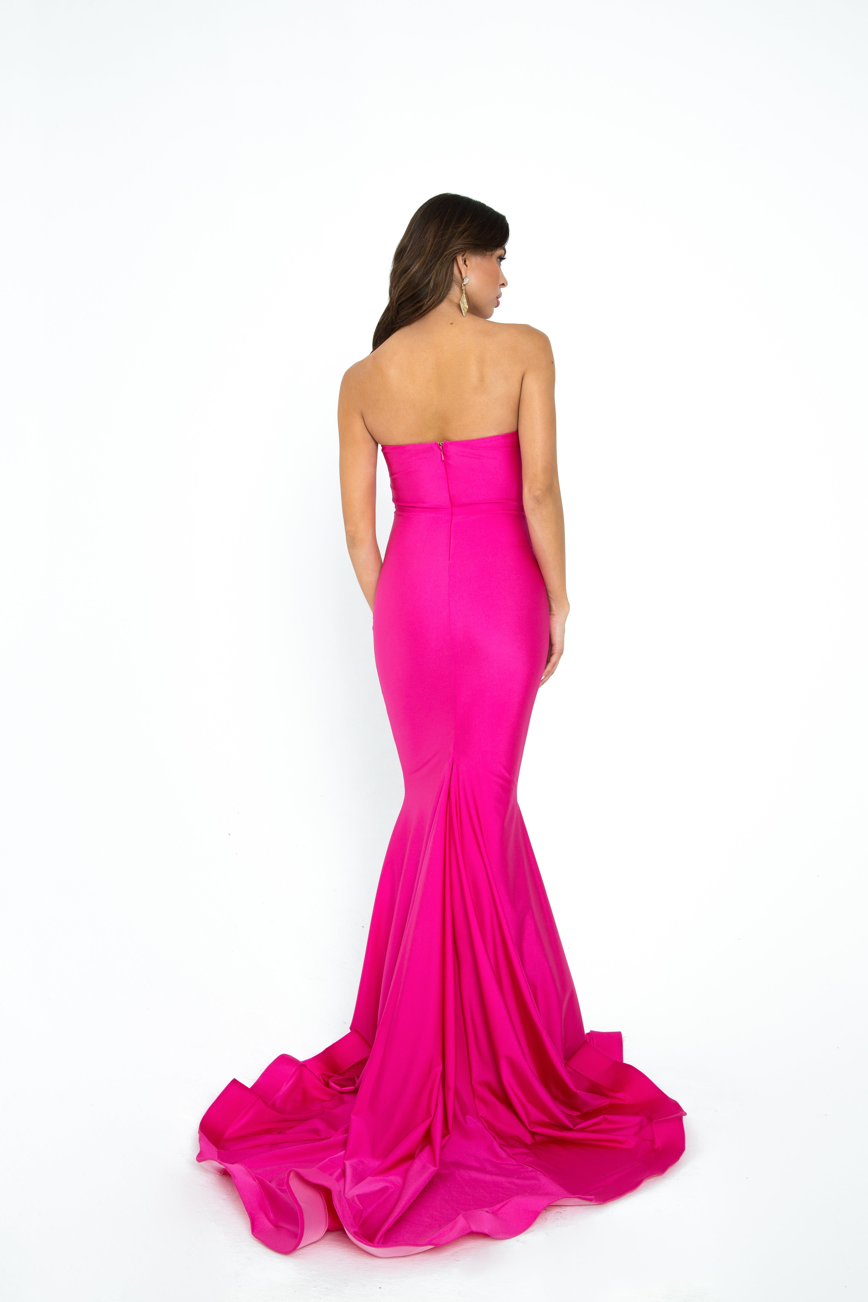 A classic fitted strapless silhouette made in Lux stretch jersey.