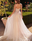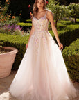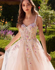 Floral multi appliques over a bustier bodice and a soft tulle skirt