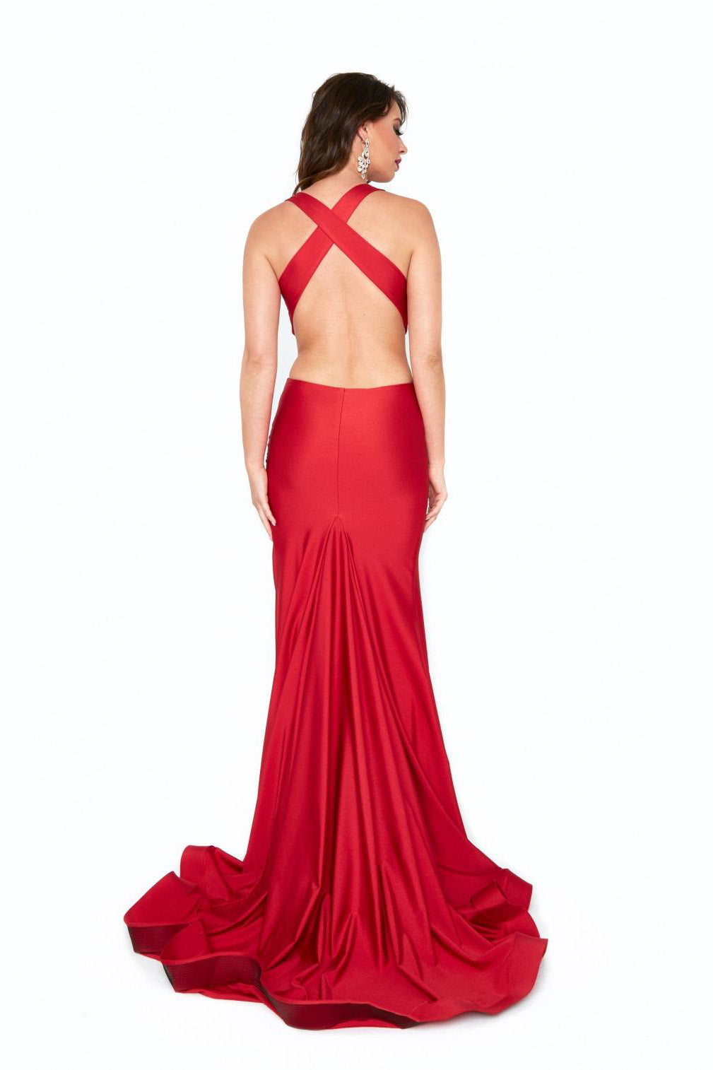 Long slim fitted dress in stretch jersey gown with a plunging neckline and leg slit. This dress is definitely a statement piece!